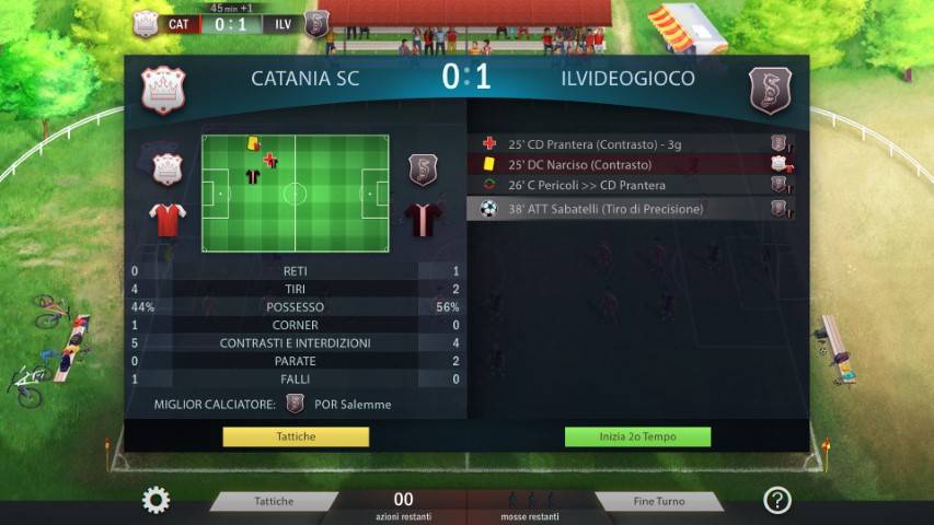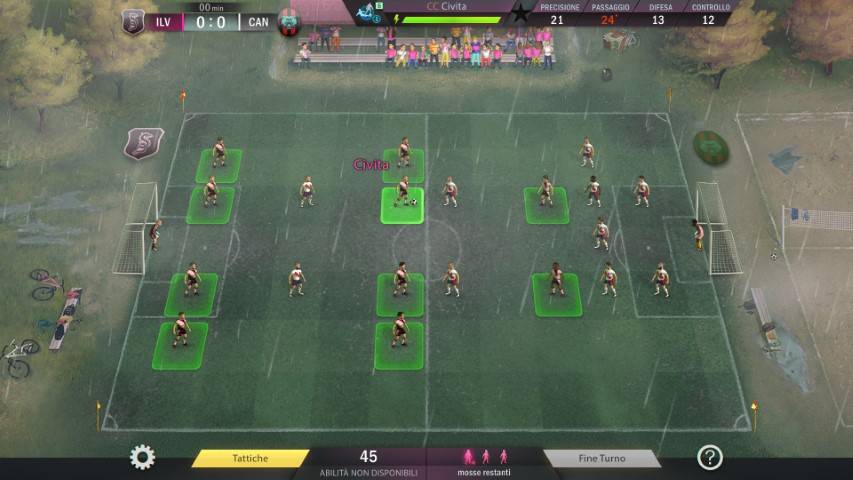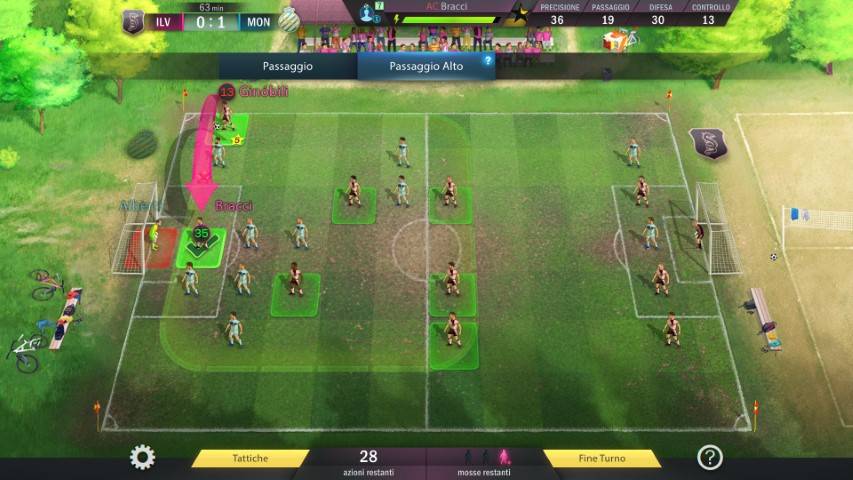 Ogni zona del campo è quindi una scacchiera ed ogni calciatore con abilità può sfruttarle al meglio per creare azioni sempre più efficaci. Non fatevi più ingannare dalle tre mosse per ogni turno di gioco. Se si sfruttano alcune abilità al meglio, queste regalano un’azione gratuita. Ad esempio se il centrale fa un passaggio rasoterra che elude l’intervento dell’avversario in linea d’aria offre si guadagna un’azione gratuita.