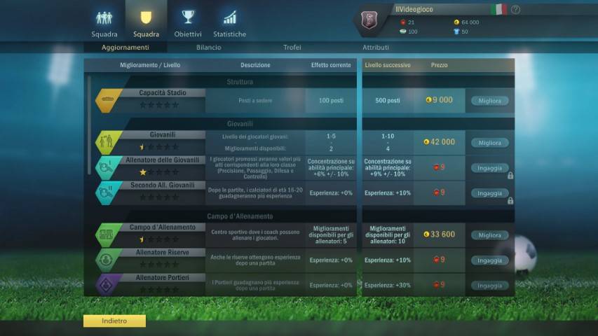 Ma non finisce qui. Ora potete aggiornare le infrastrutture del club, come il campo di allenamento, il centro scout e l’infermeria.