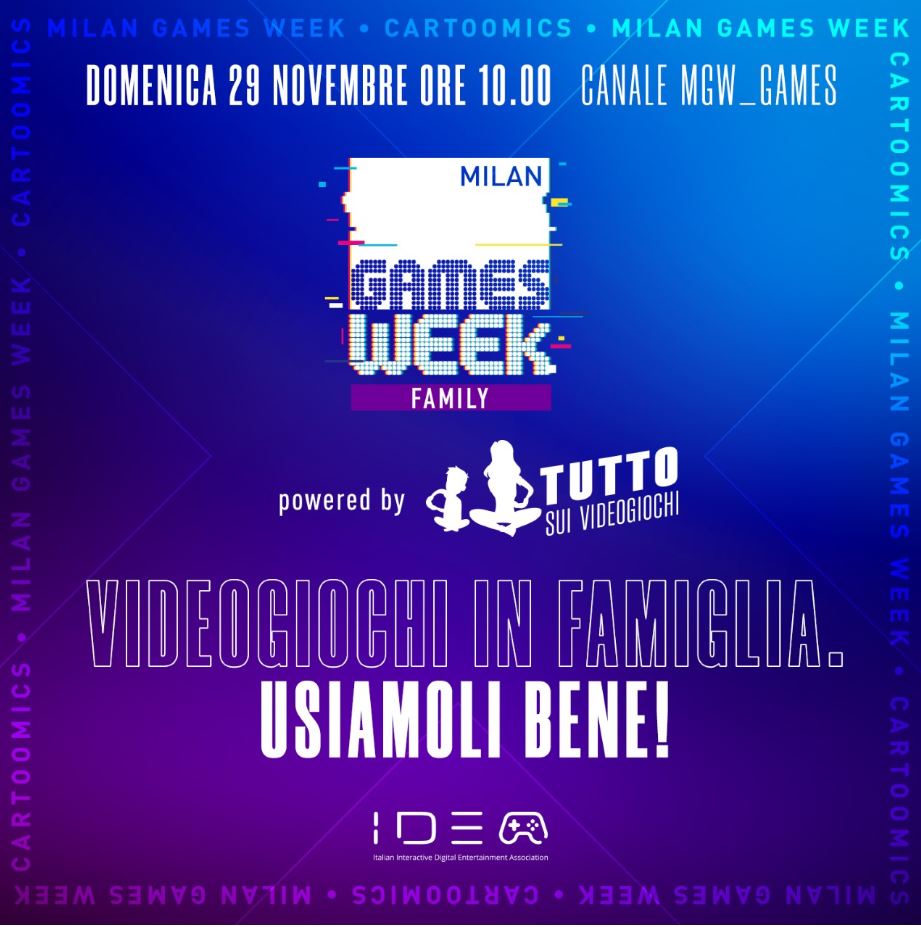 A presentarlo sarà IIDEA, che in forma digitale offrirà un’occasione per discutere di come oggi i videogiochi siano sempre più un’occasione di condivisione tra genitori e figli, e del perché sia fondamentale imparare a usarli bene.