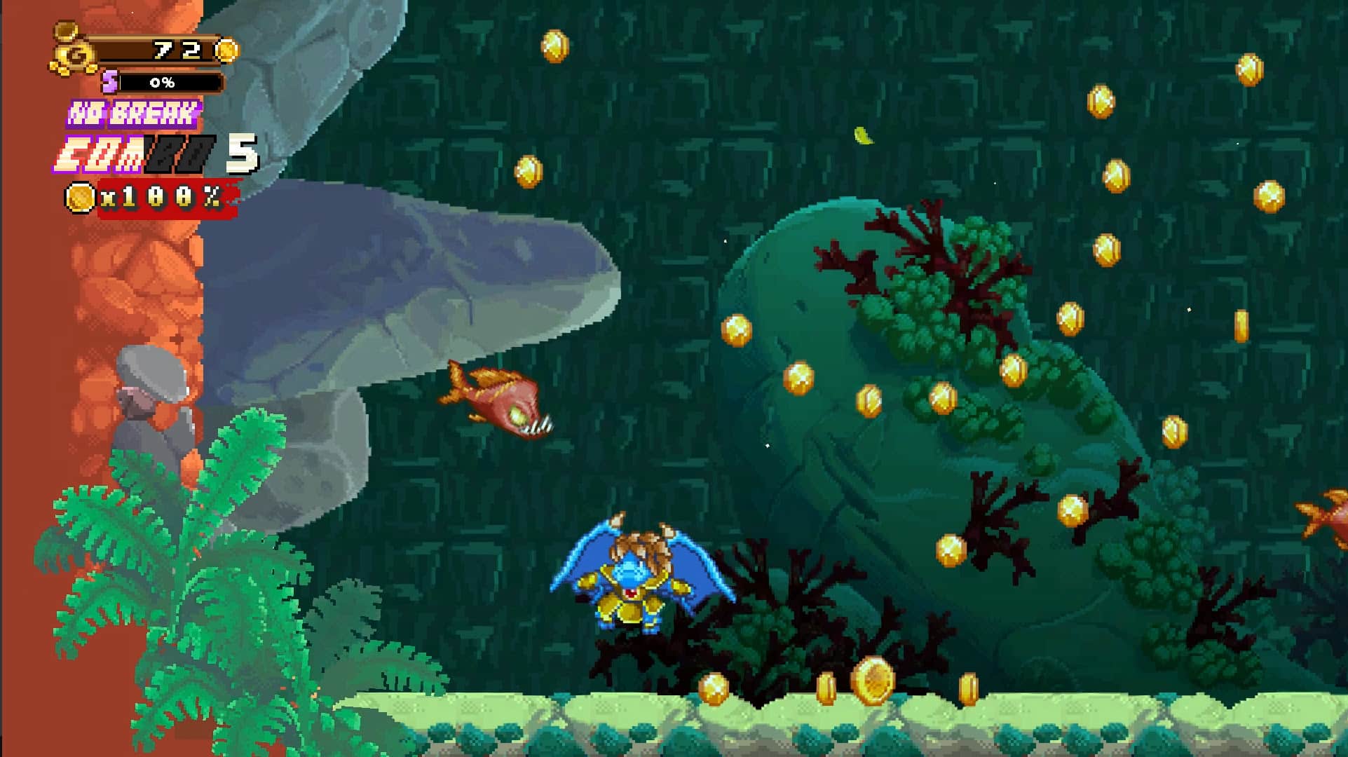 Eseguite complesse combo, scivolate e attacchi rapidi. Sconfiggete i mini-boss e staccate la pelle dalla testa di nemici giganti e potenti. Unitevi all’intensa azione per scoprire molte aree diverse da sbloccare dai nomi bizzarri, come Nacho Island, un’isola governata dal Generale Salsa. Completate tutte le fasi con il miglior tempo, un alto conteggio delle combo e più monete possibili. Afferrate oggetti da collezione e da lancio che vi aiuteranno in battaglia. Nuotate e attaccate sott’acqua facendo attenzione ai pesci assetati di sangue, sfrecciate sopra ostacoli appuntiti e cercate di non ferire i gattini nel mentre. Ed infine, sconfiggete il Re Demone!