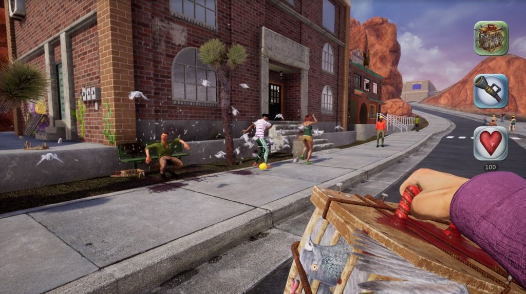 Edensin ha a disposizione un sacco di lavoro onesto che il Dude può scolgere, teoricamente, senza ferire alcun essere vivente. Tuttavia raramente un giorno nella vita di Postal Dude trascorre senza intoppi. Ci sarà una gran varietà di armi, tra cui una pala, un fucile a pompa, bombolette a gas e il famoso machete boomerang. Faranno la loro comparsa nuove armi come l’AK, che avranno il loro tipico tocco alla Postal. Questo anche grazie a potenziamenti come il classico silenziatore “gatto”, e una bevanda energetica a doppia impugnatura. Una scopa potrà sembrare una cattiva scelta per un combattimento, ma quando si è sotto l’influenza della vitamina X, una semplice rotazione potrebbe arrivare a deviare i proiettili nemici.