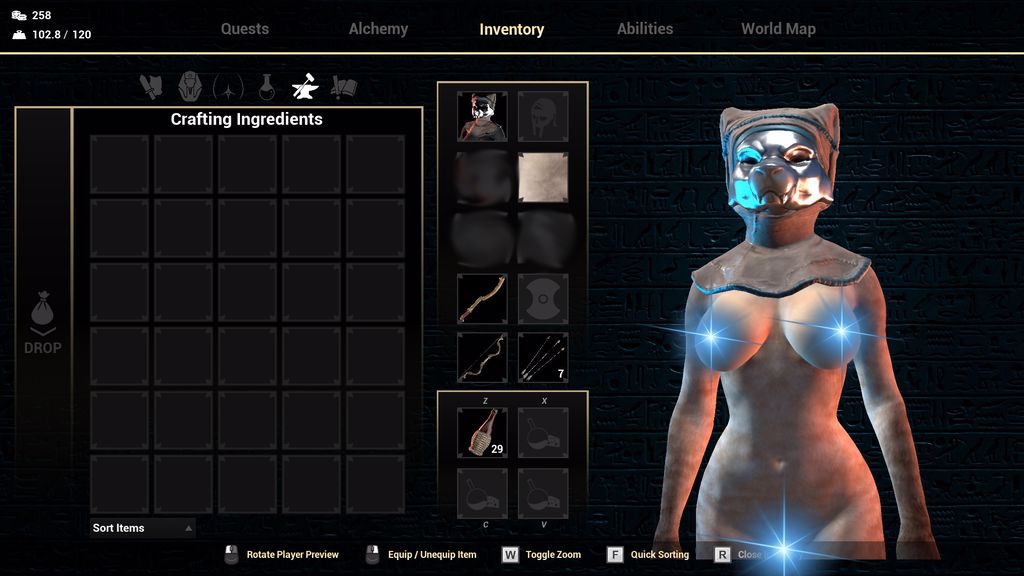 La cura per i dettagli è veramente tanta, e ci presenta il paesaggio di Sabu in maniera molto verosimile, da autentico Antico Egitto. Tutti coloro che per esempio hanno avuto modo di giocare ad Assassin’s Creed: Origins resteranno certamente incantati dalla realizzazione degli ambienti. Nel corso dell’esplorazione la nostra protagonista si imbatterà in mercanti e in varie casse sparse per il mondo di gioco.