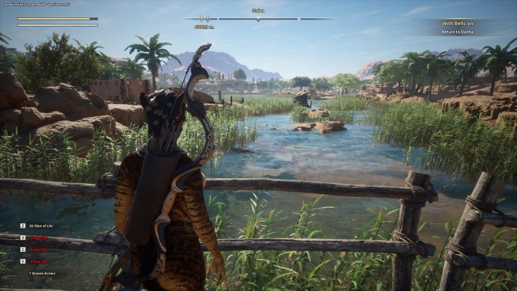 Quando abbiamo messo piedi in questo scorcio di antico Egitto siamo rimasti a bocca aperta dinanzi a cotanto livello di fotorealismo. I colori, l’acqua, il cielo, la luce, i personaggi… Tutto curato nei minimi dettagli, dove ogni passo all’interno di questo mondo si è rivelato un autentico piacere. Per gli occhi. Robuste e durature sono state le prestazioni, con un framerate stabile a 60 fps in ogni circostanza. Naturalmente a settaggi massimi. Molto buono anche il comparto audio, anche se in svariati frangenti sono risultanti mancanti i file audio di diversi npc.