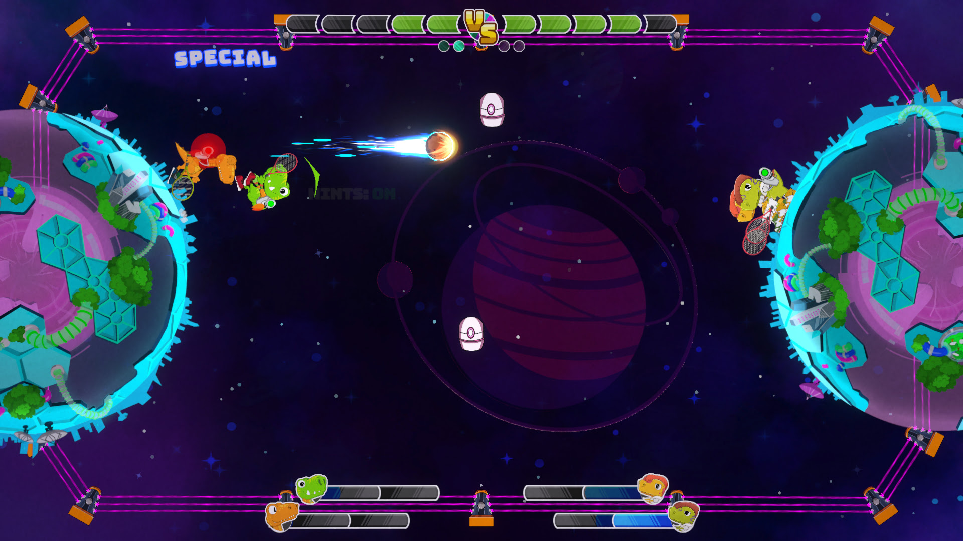 In Dino Galaxy Tennis puoi provare le tue possibilità in una campagna storia per giocatore singolo, con un’opzione per 2 giocatori in modalità cooperativa o in modalità Versus fino a 4 giocatori. Puoi anche provare a battere record cosmici in una serie di varie sfide basate sulle abilità. Ultimo ma non meno importante: il gioco farà parte di Steam Remote Play Together il 25 marzo.