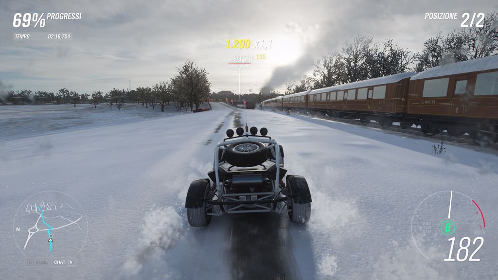 Alcune esibizioni speciali ci faranno gareggiare contro hovercraft giganteschi… O persino treni d’epoca in corsaDagli eventi Forzathon (abbreviazione del corrispettivo inglese di Maratona Forza ndr) ai vari giochi stagionali, gli appassionati avranno di che divertirsi per molto tempo. In qualunque momento oltretutto potremo decidere se connetterci a una “sessione Vita Horizon”, e lasciare che l’open world si popoli di altri giocatori reali… Oppure rimanere da soli e tranquilli, con le altre auto per la mappa che saranno controllate dai “fantasmi” degli altri giocatori, o semplicemente dagli NPC.