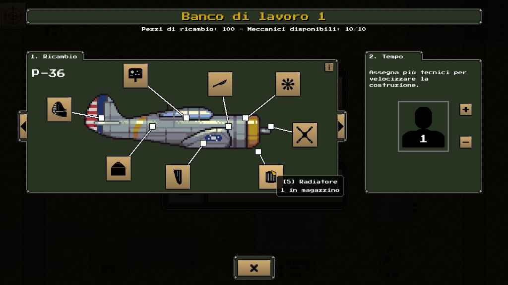 Quando la stanchezza raggiunge il massimo, dovremo tenerlo a risposo. Partecipando a più missioni e aumentando di grado, il pilota migliorerà le sue caratteristiche che influenzeranno tutti i valori sopracitati. Di base, ognuno dei nostri soldati parte come aviere e può arrivare fino al ruolo di capitano. L’ultimo gradino è quello dell’asso dei cieli. Sia la parte relativa ai ricambi e alla gestione della base che quella dei piloti, risultano armonizzate in un contesto che ne enfatizza la progressione.
