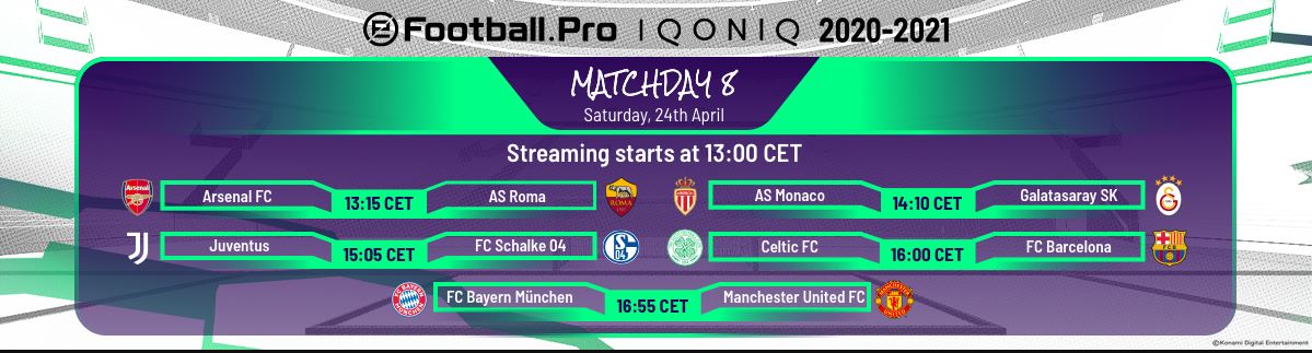 Conclusa la settima, si passa all’ottava giornata. Stiamo parlando naturalmente del campionato eFootball.Pro IQONIQ, che tornerà a intrattenere gli appassionato sabato 24 aprile. Konami Digital Entertainment B.V. infatti ha annunciato il programma completo di questa ottava giornata.