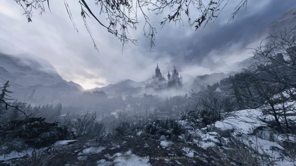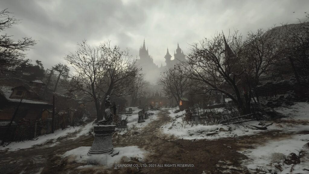 Visto da vicino, il villaggio fa ancora più timore. Silenzio assordante, lapidi antiche e strane iconografie. Cosa lega tutto ciò? Cosa nasconde realmente questo posto? In lontananza, avvolto da una leggera foschia, il castello Dimetrescu fa guardia su tutto ciò che succede nel villaggio.