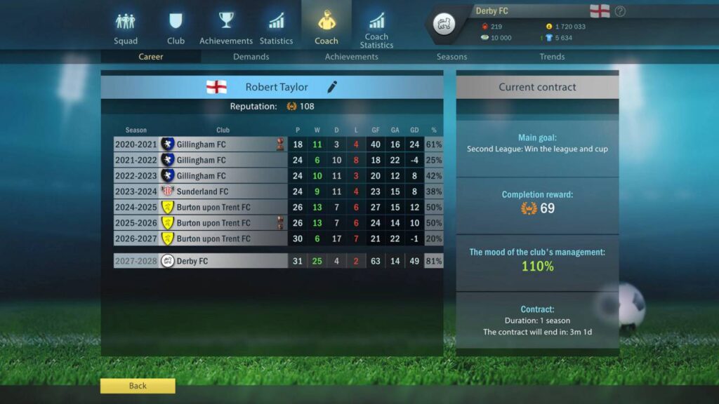 In questa modalità, riceverete compiti e guadagnerete Reputazione, ma non si correrà il rischio di essere licenziati finché non sarà l’utente stesso a decidere di lasciare il club.