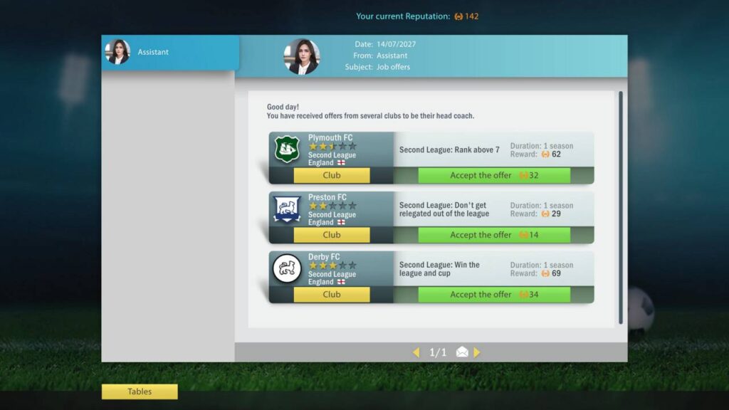 Ci saranno anche altri livelli di difficoltà di gestione: da molto severo a leale. Inoltre, sarà possibile ottenere un sacco di Reputazione e ottenere inviti dai top club fin dall’inizio. Ma questo disabiliterà gli obiettivi.