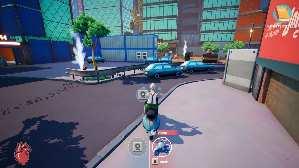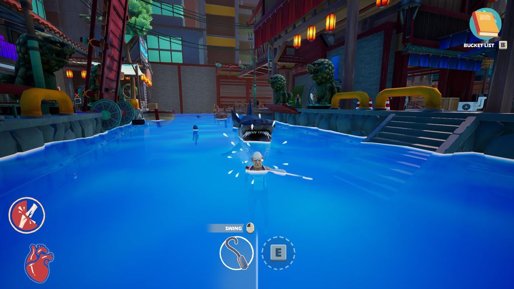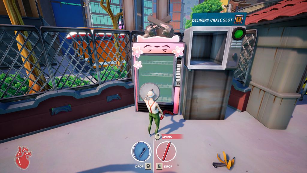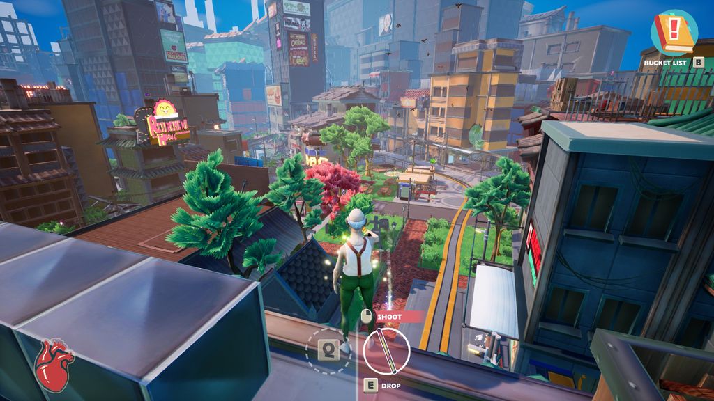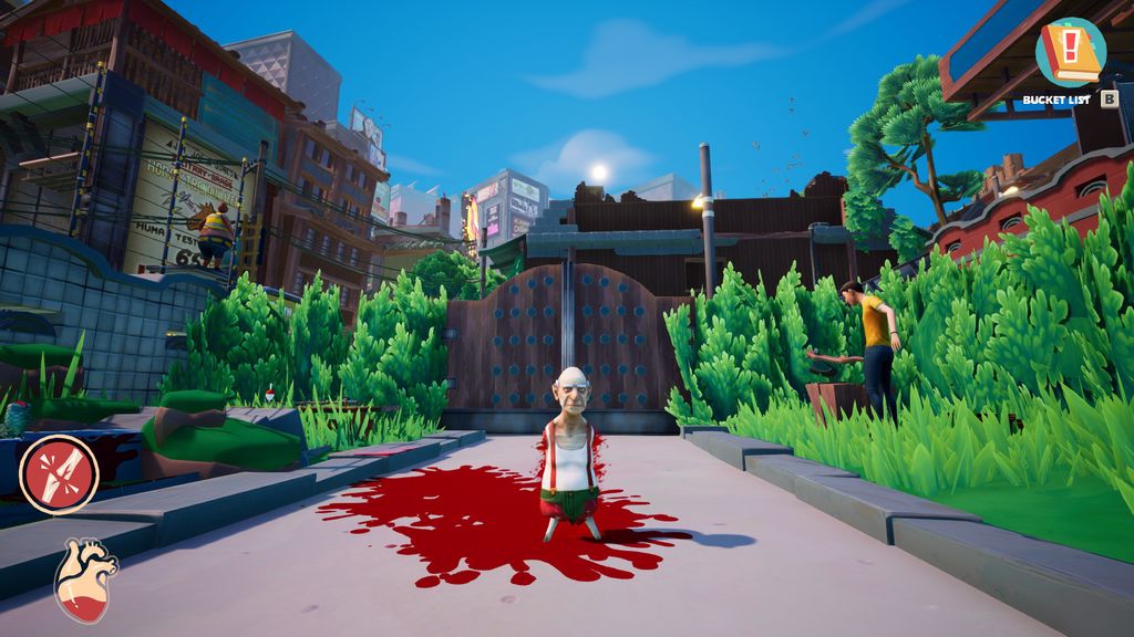 Uno scudo e una pistola spara-bucce di banana? Una doppia ciabatta con cui assestare colpi in maniera indiscriminata ai passanti? Tutto è possibile in un mondo di gioco open world di estensione modesta, ma tuttavia denso di punti d’interesse. Divisa in zone (il porto, il giardino zen ecc), la città nasconde infatti tanti luoghi da scoprire, compresi passaggi segreti da attivare tramite la risoluzione di rompicapo.