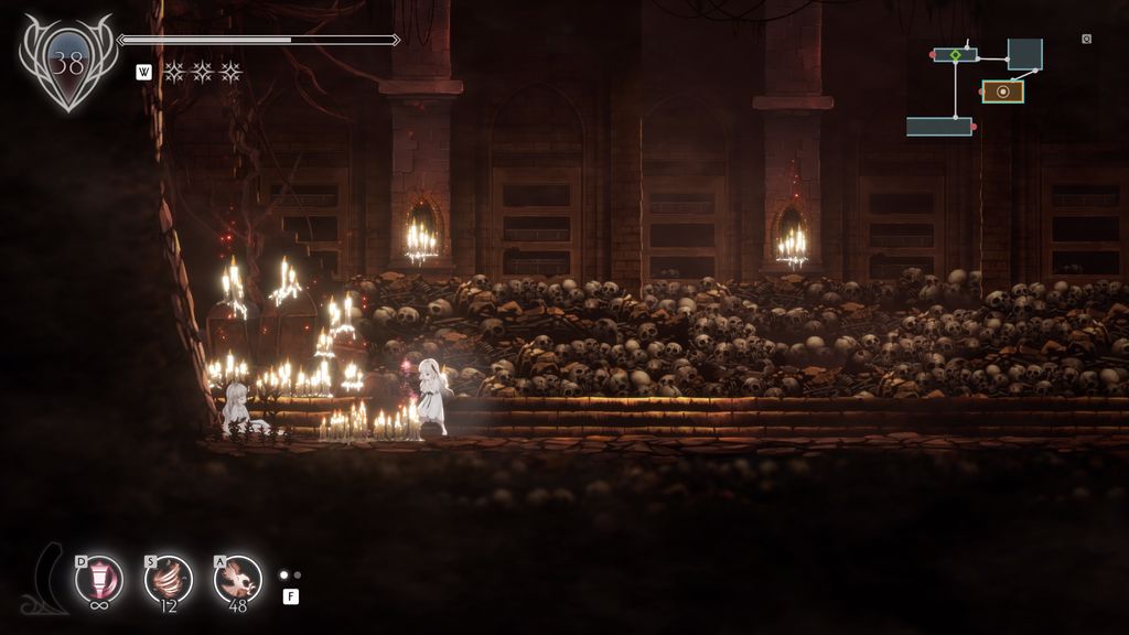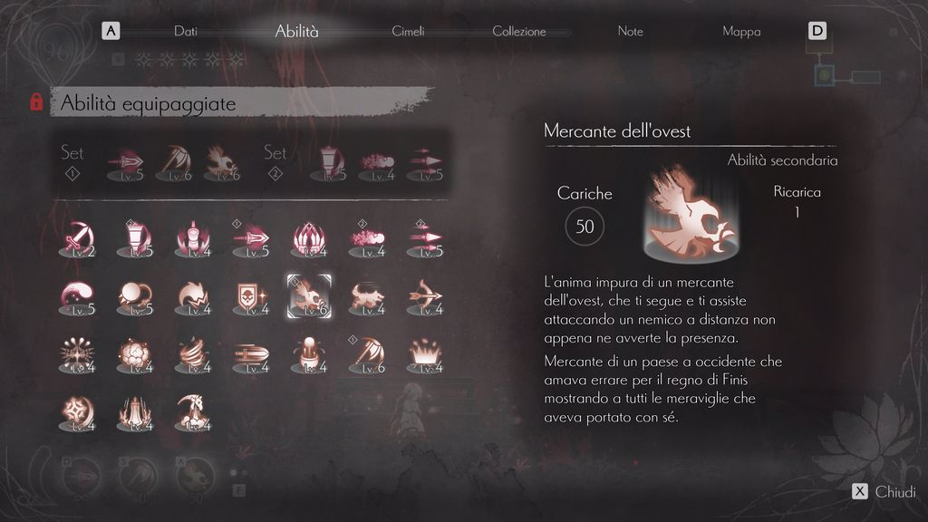 A ciò si unisce l’ampia possibilità di personalizzazione del proprio stile di combattimento, tra la scelta delle abilità e quella dei cimeli. Che proprio come in Hollow Knight consentono di aggiungere vari bonus passivi. Rispetto ad altri titoli della stessa risma il titolo nipponico tende tuttavia a essere meno punitivo. La morte infatti non presenta alcuna penalità, se non il respawn all’ultimo punto di ristoro visitato. Ciò si traduce in un inno alla continua sperimentazione di set di abilità e cimeli, in grado di valorizzare il nostro stile.