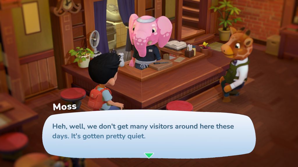 Al piano terra il sindaco Moss ci ricorderà costantemente cosa fare, nell’eventualità in cui uno rimanga “bloccato” senza sapere come proseguire. Ciò che tuttavia abbiamo trovato un po’ scomodo è il fatto che non vengono suggeriti i comandi. Per scoprire come eseguire l’azione di turno (tagliare un albero, ecc), come fare delle emote ecc ci siamo ritrovati a dover premere i tasti a caso.