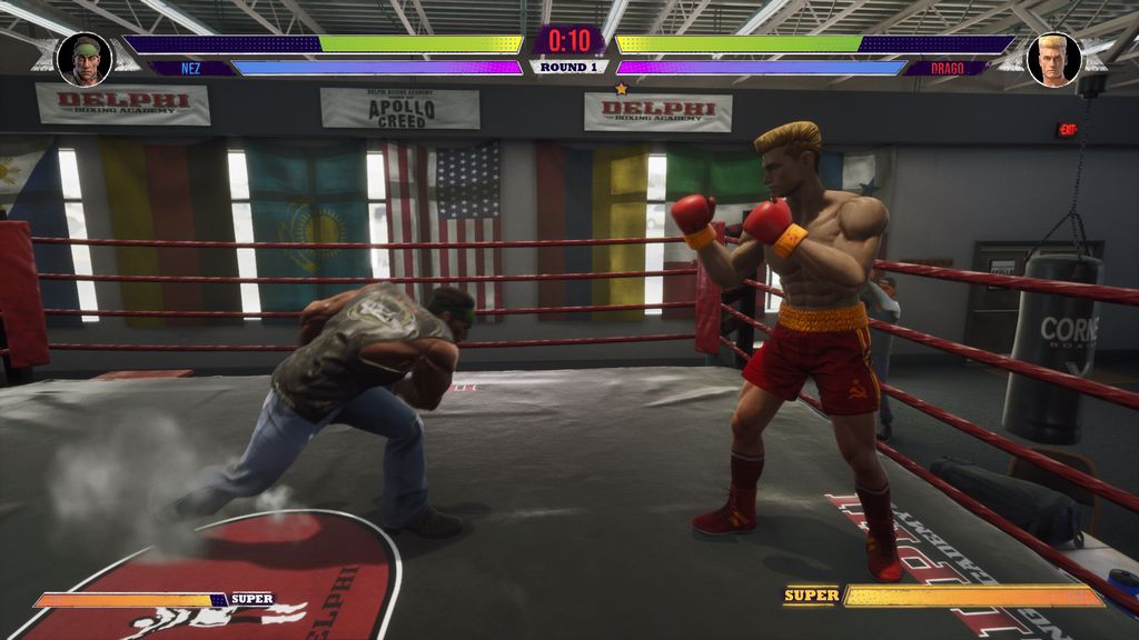 Una volta esaurita, ci ritroveremo esposti ai pugni avversari. Il nostro pugile potrà inoltre contare su una barra “Super”, che una volta riempita (attraverso colpi subiti e inflitti) ci permetterà di scatenare un potente attacco speciale. A completare il parco mosse abbiamo infine la facoltà di effettuare delle prese e dei piccoli scatti che saranno utili a schivare i colpi. A livello scenico potremo invece “interagire” col nostro avversario mettendolo fisicamente alle corde o all’angolo, dove potremo tempestarlo di colpi con un margine sensibilmente maggiore.