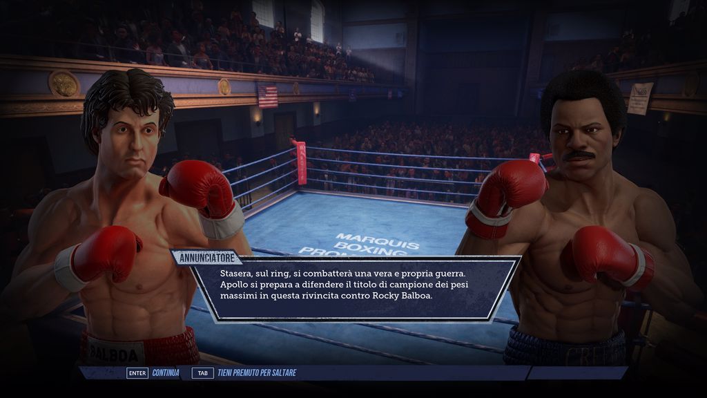 Sul fronte tecnico infine Big Rumble Boxing: Creed Champions si difende abbastanza bene, pur non costituendo nulla di particolarmente esaltante. Texture ed espressività dei volti sono piuttosto distanti dagli standard ai quali sempre più titoli sono soliti abituare di questi tempi. Se non altro nella versione Pc da noi testata le prestazioni del gioco sono piuttosto buone per quanto riguarda il framerate. Anche se alcune movenze e le cadute sembrano invece poco curate, il combattimento complessivo fra i numerosi e ben riconoscibili pugili è tanto divertente quanto bello da vedere.
