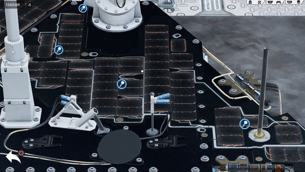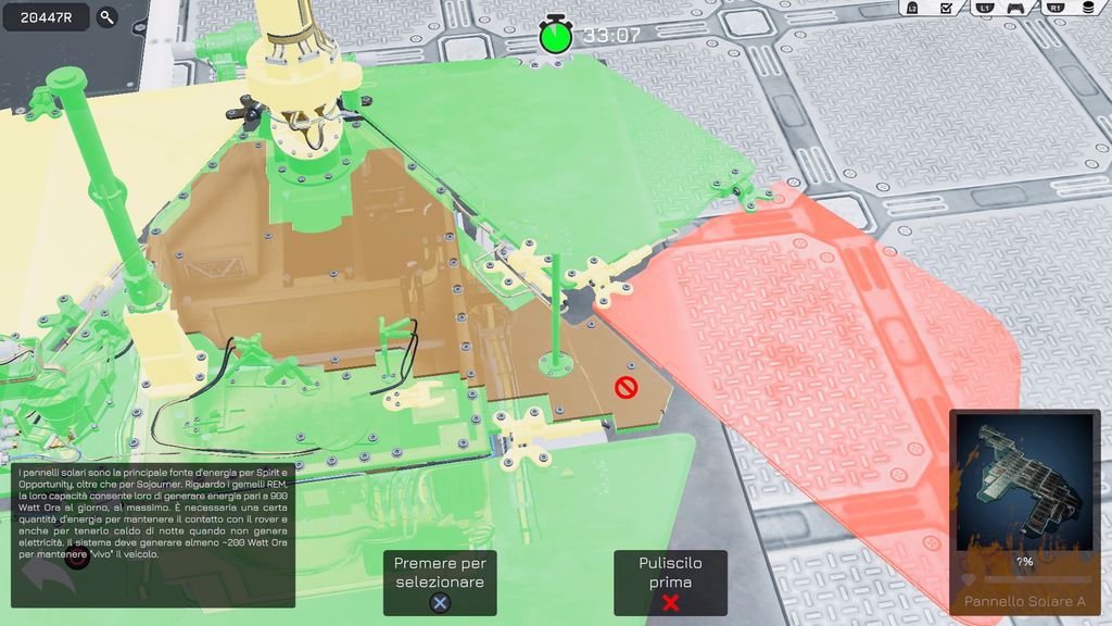 Rover Mechanic Simulator ci incoraggia a riparare le piccole parti che compongono i pezzi danneggiati, invece di sostituire l’intero set. “Sporcarsi le mani” con piccole componenti è sempre il modo più conveniente per progredire, ma anche il più artificioso. Basterà un po’ di impegno iniziale per accumulare velocemente una discreta quantità di Risorse. Queste costituiscono la valuta del gioco e saranno necessarie per stampare tutto l’occorrente dalla nostra fidata stampante 3D.