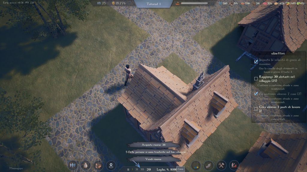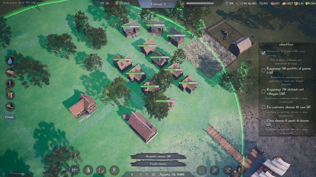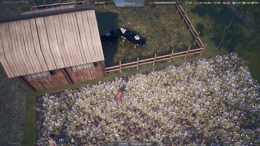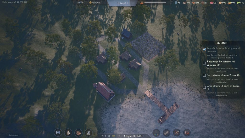 Dopo aver costruito il molo, il nostro compito sarà quello di suddividere il territorio in “zone”. Da una parte inizieremo a costruire case per i cittadini, dall’altra aree lavorative come fattorie, allevamenti e frutteti. Una volta arrivati nell’insediamento, gli abitanti si metteranno subito all’opera. La possibilità di aumentare liberamente la velocità di gioco (come in ogni city builder che si rispetti) renderà il tutto più comodo.