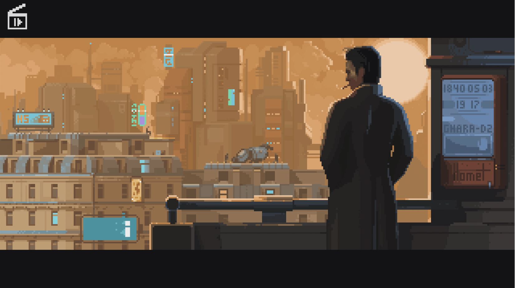 Lacuna – A Sci-Fi Noir Adventure è stato realizzato interamente in pixel art. Una scelta stilistica che ben si sposa con l’atmosfera proposta dal gioco. Alcuni scenari sono davvero interessanti, anche se la palette cromatica sembra apparire talvolta un po’ scialba, così da non valorizzare il comparto artistico. Va però detto che le illustrazioni a schermo intero sono semplicemente deliziose, e regalano un’aria evocativa durante gli intermezzi di narrazione della voce fuori campo.