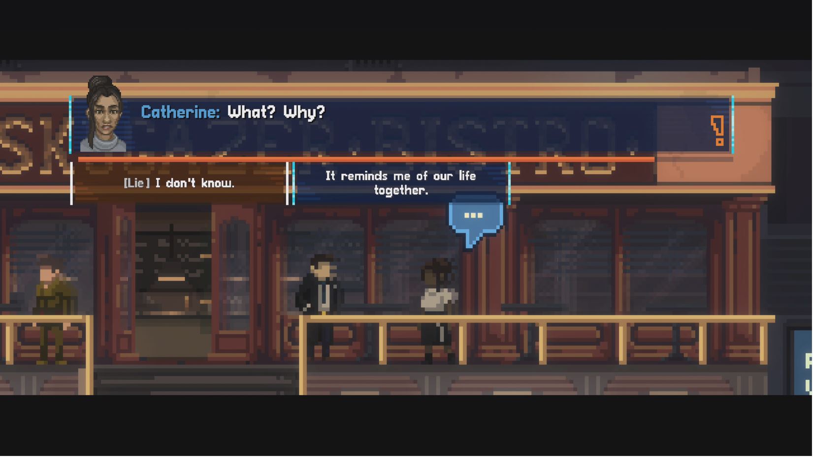 La pista che Niel dovrà percorrere lo porterà a scoprire verità che avrebbe preferito non conoscere, e che vanno oltre la sua professione. Tutto ciò lo trascinerà in situazioni sempre più scomode e pericolose, costringendolo in varie occasioni a fare scelte tanto difficili quanto necessarie. Di fatto ci si troverà spesso di fronte al proverbiale “effetto farfalla”, e questo è un punto molto a favore di Lacuna – A Sci-Fi Noir Adventure. Esistono, sì, alcune illusioni di scelta che porteranno comunque allo stesso risultato, specie nei dialoghi.