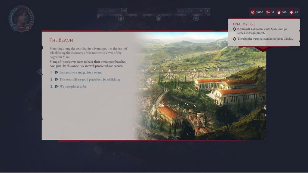 Dalle sperdute isole della Grecia alle immense distese del Nord Africa, fino ad arrivare alla fredda e inospitale Gallia. Senza dimenticare, naturalmente, la capitale del mondo, Roma. Il sistema di scelte e conseguenze introdotto da Logic Artist funzionerà egregiamente, permettendoci di plasmare a piacimento la storia che si svolgerà dinanzi a noi. Per questo motivo sarà importante prestare la massima attenzione ai dialoghi e a tutte quelle piccole e grandi scelte che potrebbero rivelarsi decisive per il futuro del nostro alter-ego.