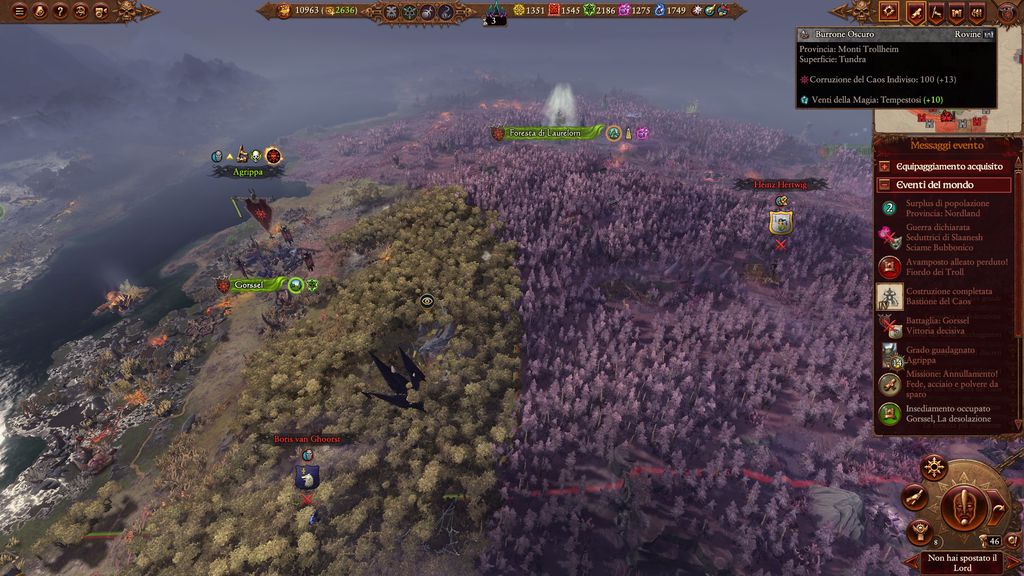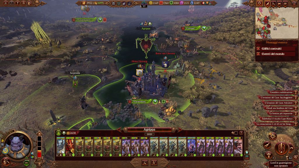 Creative Assembly riesce a dar vita a una trama lunga, elaborata ed interessante, che saprà deliziare i fan del franchise. La scelta della fazione, oltretutto, determinerà la posizione di partenza all’interno dell’universo di gioco e cambierà in modo significativo l’esperienza. Per esempio abbiamo voluto iniziare la nostra prima avventura nei panni del temibile principe dei Demoni del Caos, partendo dalle Helspire Mountains. Cominciando con Kislev, invece, si comincerà dal fiume Urskoy.