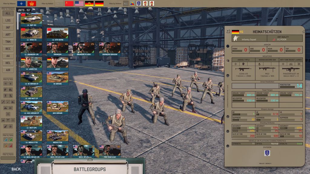 Ad esempio gli Humvee, giusto per citare un veicolo iconico per le forze statunitensi. Un confronto con la roadmap fissata dagli autori rivela che, terminato lo sviluppo, il giocatore potrà contare su dodici nazioni e fino a seicento unità. Parliamo di cifre dimezzate rispetto ai precedenti lavori dello studio parigino, come Wargame. Inoltre, pare che gli sviluppatori siano in ritardo sul contenuto promesso.