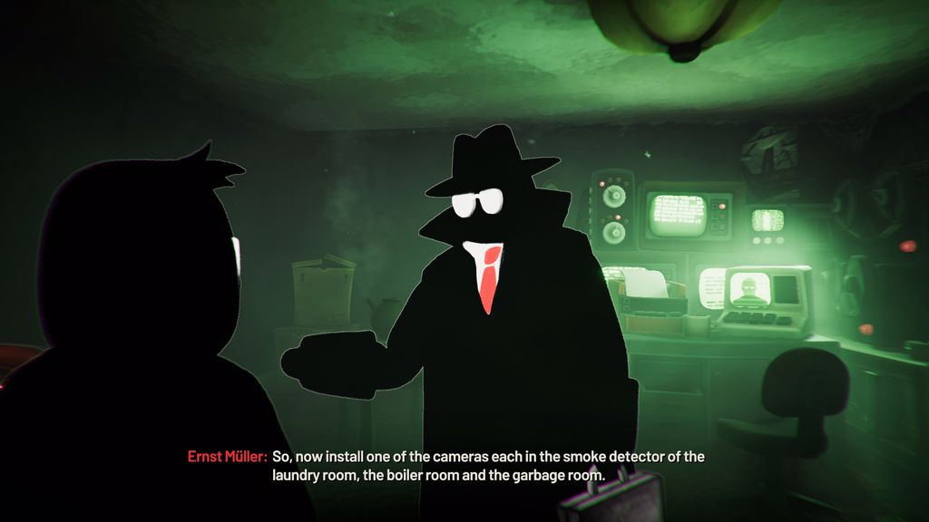 In termini di gameplay Beholder 3 si pone come un ibrido tra un gestionale e un’avventura punta e clicca (senza però enigmi di sorta). Per la maggior parte del tempo saremo impegnati a spostarci ripetutamente nel nostro condominio, interagendo con i vari oggetti e npc per completare gli incarichi. Tra gli strumenti di spionaggio che avremo a disposizione figurano una telecamera nascosta e dei grimaldelli. La prima potrà essere piazzata nell’appartamento di un inquilino o nell’ufficio di un collega.