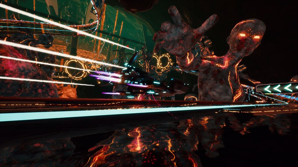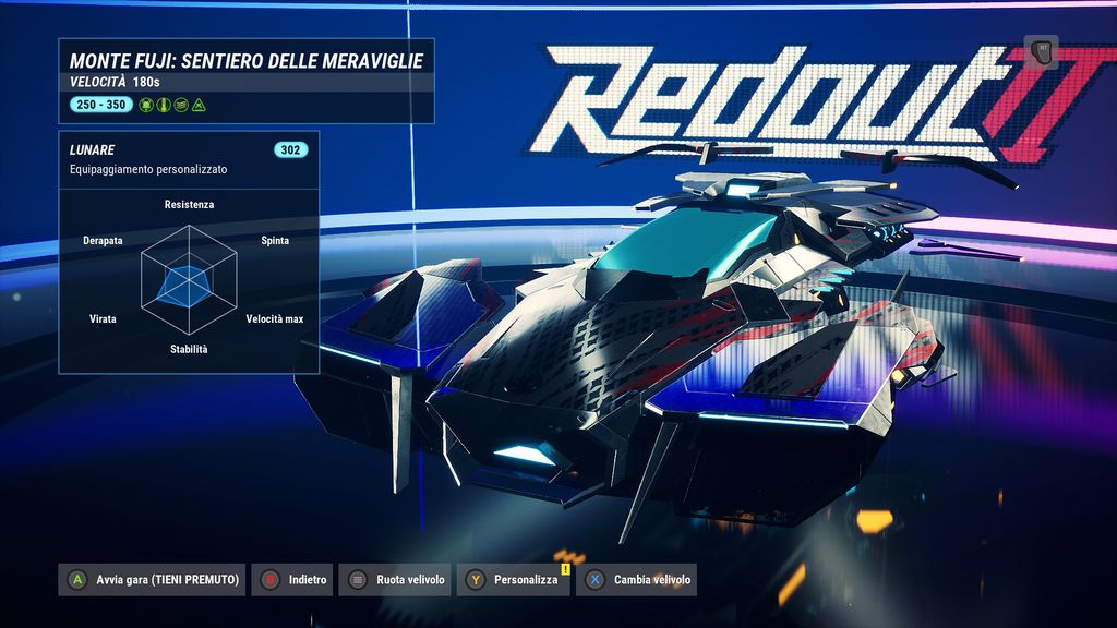 Le variazioni tra le piste arrancheranno timidamente, con diverse ripetizioni in svariate salse dei primi tracciati. Dei “modificatori” in ogni evento ci permetteranno di settare il livello di potenza permesso per accedere, la gravità del pianeta e altre dinamiche. In Redout 2 inoltre i fattori ambientali influenzeranno il surriscaldamento del nostro mezzo e la durata del turbo, soprattutto quando passeremo vicino a fonti di calore estreme come la lava. Peccato non aver visto accadere lo stesso anche nelle sezioni subacquee.