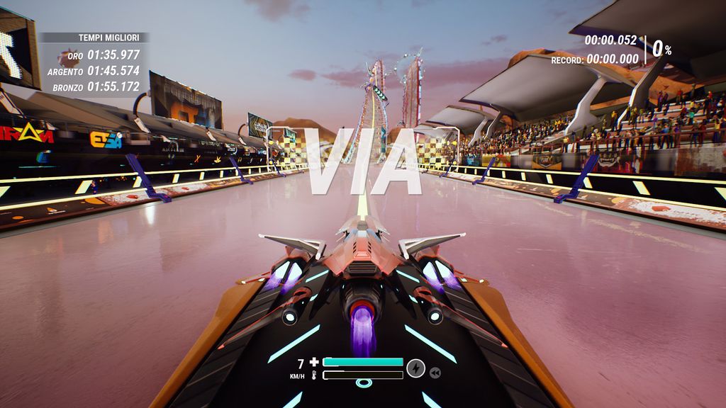 Gli eventi in Redout 2 saranno gare semplici, ad eliminazione e tornei. Torna anche in questo secondo capitolo la spina nel fianco di ogni perfezionista del completamento, la prova a tempo, accompagnata dalle prove di velocità. Se nelle gare (almeno a difficoltà pilota) avremo un confronto equo, in questi eventi solitari invece non ci sarà da scherzare. Non saranno permessi errori per alcune medaglie d’oro. L’estrema costanza del giocatore però verrà presto ripagata con una proporzionale acquisizione di padronanza, curva dopo curva, alla ricerca della perfezione ad ogni giro.