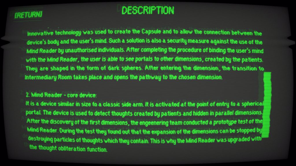 Senza fare troppi spoiler, vi diremo che anche gli studi condotti in questo posto non erano convenzionali e che il capo della ricerca, il professor Kaydanovskiy, era ben presto uscito dal seminato. Questo luminare era convinto di poter aprire dei varchi interdimensionali usando le abilità di certi pazienti, e sembrerebbe pure che ci sia riuscito! Scoprire a quali strani sviluppi questi studi hanno portato lo lasceremo a voi, se ne avrete il coraggio.