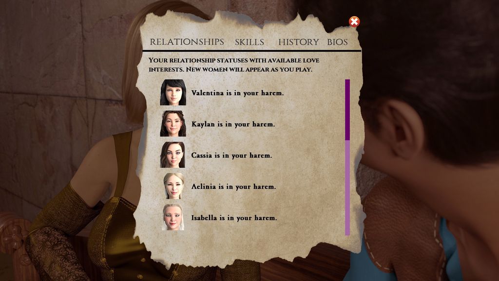 Il piatto forte è rappresentato, come ci si aspetta da un titolo di questo tipo, dall’insieme di relazioni che potremo avere con le varie fanciulle. Principesse, nobili e patrizie varie e persino una divinità. Inutile dire che nel corso della partita le nostre decisioni influenzeranno la possibilità di avere un rapporto con loro. Potremo deciderne di puntarne solo una o due, oppure sarà possibile provare a impalmarle tutte.