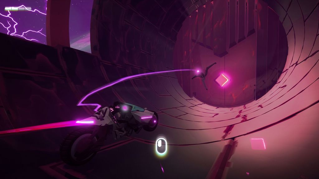 Ludicamente parlando il titolo di Heart Core è strutturato come una sorta di twin stick shooter con visuale isometrica. Di base potremo correre con la nostra moto lungo i vari scenari, schivando i vari pericoli ambientali e gestendo le distanze contro gli avversari. Il sopracitato rampino invece rappresenta il fondamento attorno a cui ruota il sistema di combattimento, e in generale il gameplay.
