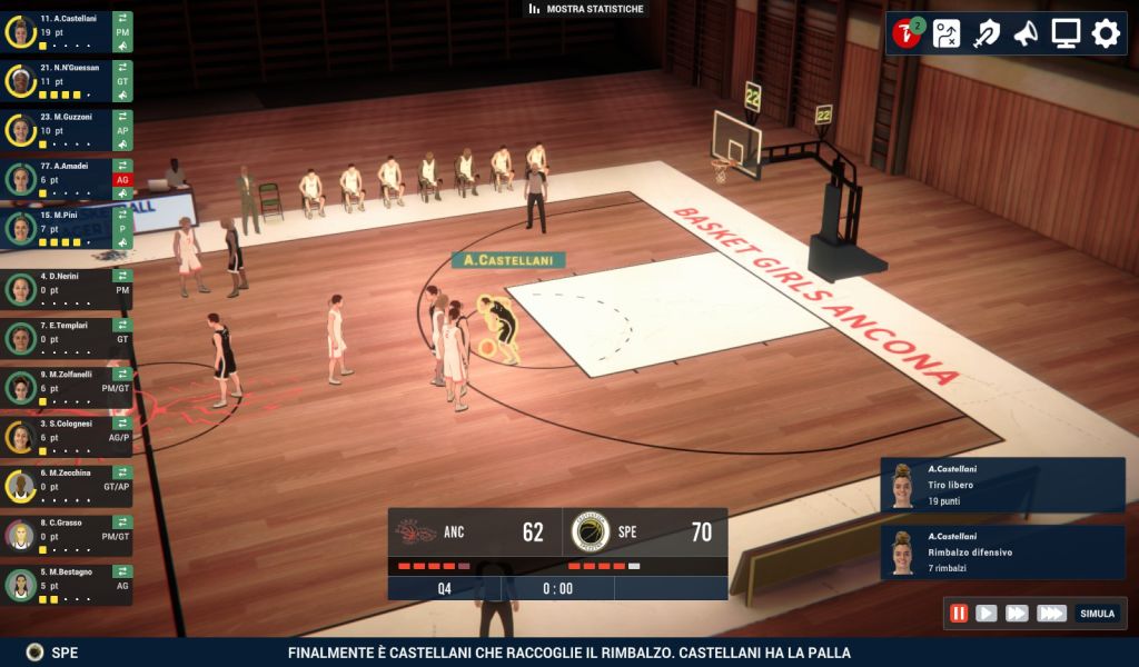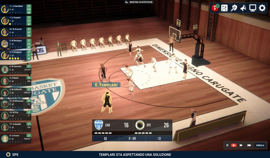Che siano amichevoli o partite di campionato avremo sempre la possibilità di “simulare” il risultato, anche se a nostro avviso l’impiego di questa opzione tende a essere punitiva. Il gioco dà invece il suo meglio giocando i quarti di tempo (anche a velocità maggiorata), permettendo al giocatore di agire direttamente su quanto accade in campo. Quello della palla a spicchi oltretutto è un mondo ben più sfaccettato di quanto non si direbbe a prima vista.