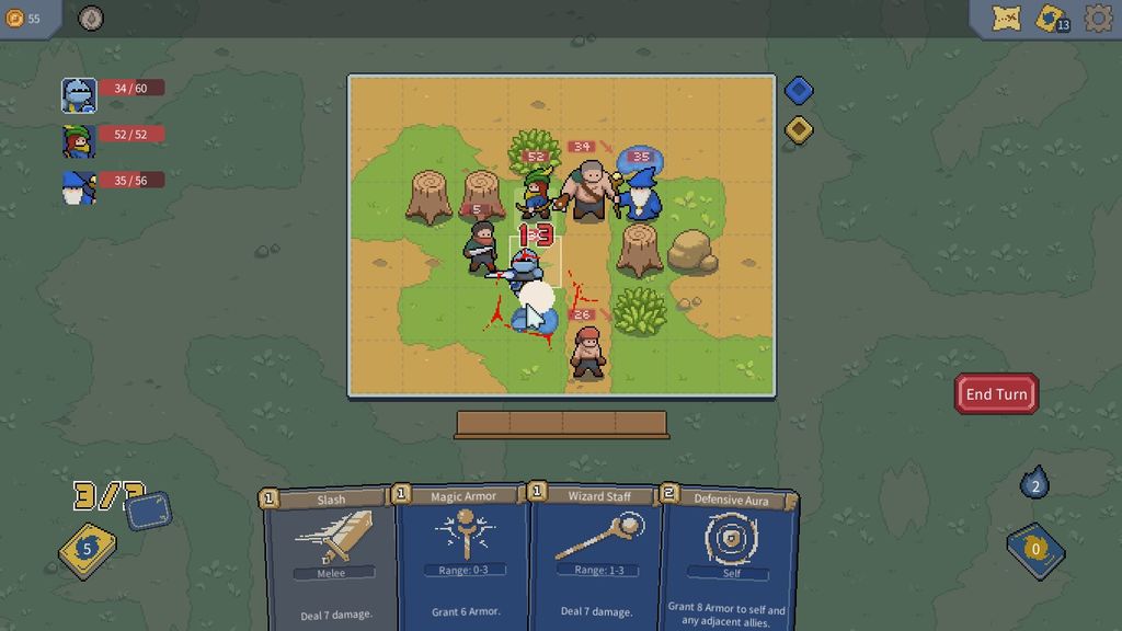 Per esempio, la perdita del guerriero porterà a usare due o massimo tre carte per l’arciere e il mago, nonostante si continui a pescare una normale mano da cinque. In combattimento, con pochi nemici, potremo gestire tale situazione. Ma in caso di superiorità numerica nemica schiacciante, il game over sarà sempre dietro l’angolo. Le mappe sono composte da griglie quadrate 6×8, con una dimensione che a nostro avviso è anche troppo esigua.