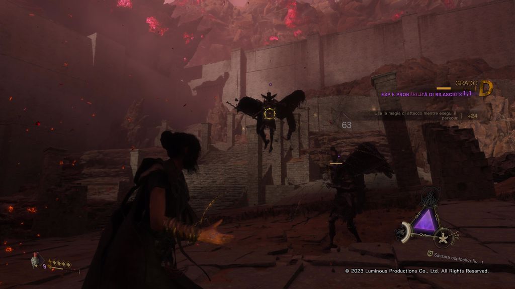 Per selezionare le differenti magie d’attacco e di supporto dovremo invece premere R1 o L1, da cui si aprirà una ruota di opzioni tra cui scegliere, come con i segni di Geralt in The Witcher 3. Decideremo quali magie usare in base alle resistenze del nemico, e inoltre sarà molto utile imparare a concatenare gli incantesimi cambiandoli velocemente durante l’esecuzione. Queste combo provocheranno un potenziamento delle stesse, regalandoci spettacolari e adrenalinici combattimenti.