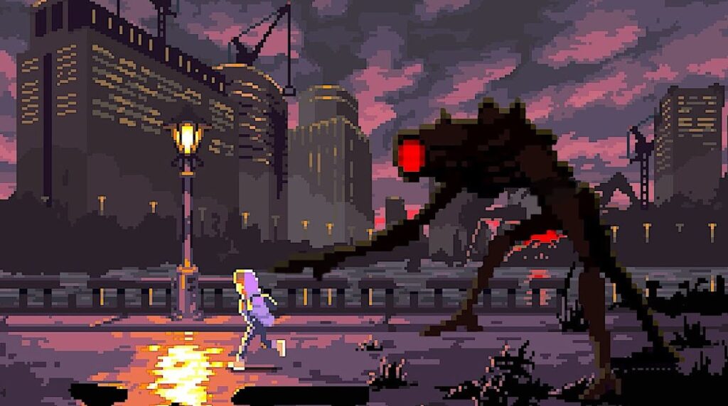 Per quanto riguarda la grafica, ogni schermo è stato accuratamente creato e animato a mano in pixel art 2D. Senza lo scorrimento laterale, si aggiunge l’elemento sorpresa di “cosa verrà dopo”. E questo ha dato anche l’opportunità di lavorare su ogni schermo come se fosse una scena cinematografica. Un dipinto a sé stante, con giochi di luce e prospettive che danno l’illusione della profondità e aggiungono carattere al mondo che si voleva creare.