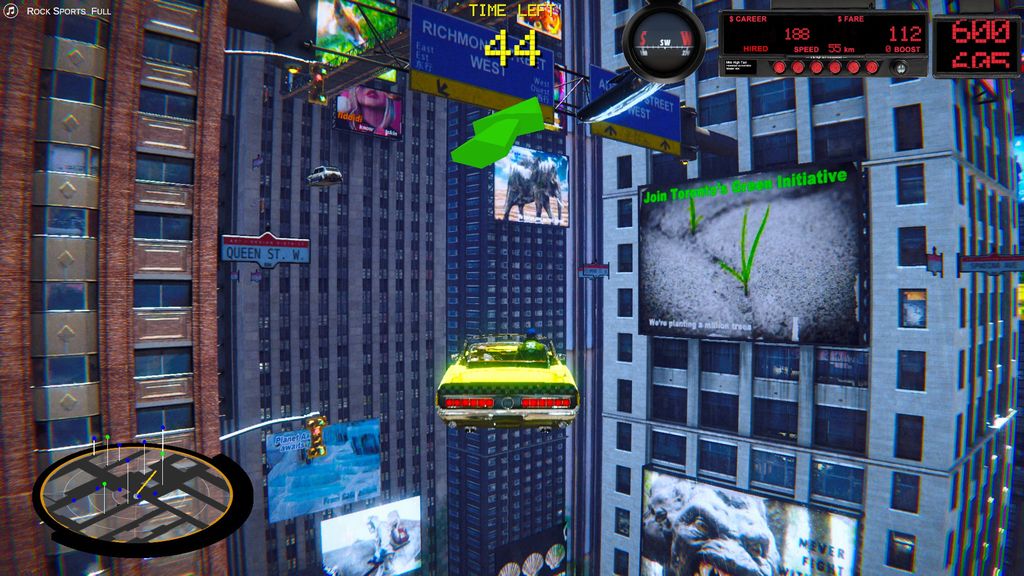 Protagonista delle nostre scorribande in Mile High Taxi sarà la città di Toronto, in Canada. O per meglio dire una sua versione futuristica e in un certo senso estremizzata, così come accadeva a Bruce Willis nel sopracitato film, quando finiva in mezzo a eventi più grandi di lui. Nel corso di una sessione di gioco infatti saranno evidenti i richiami alla celebre pellicola di Luc Besson, a partire dal “multi-pass”, con cartelloni che ne inneggeranno l’esistenza praticamente ovunque.