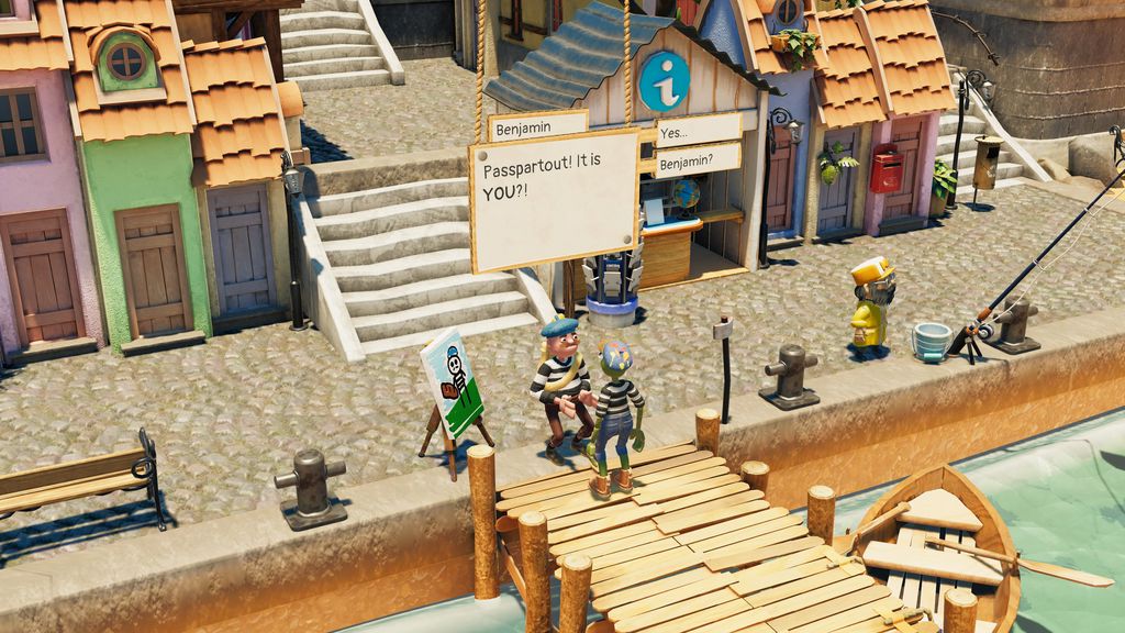 L’impostazione “open world” di Passpartout 2: The Lost Artist, ci permetterà di esplorare liberamente questo piccolo mondo. Inizialmente dovremo procurarci dei fogli su cui esprimere la nostra arte, rovistando nella spazzatura. Il materiale su cui dipingere infatti sarà limitato, e per questo bisognerà gestire al meglio il nostro inventario. Con il giusto impegno però riusciremo presto a permetterci il lusso di acquistare materiali e migliorie per i pennelli dal nostro caro amico Benjamin, direttamente dalla sua bottega.