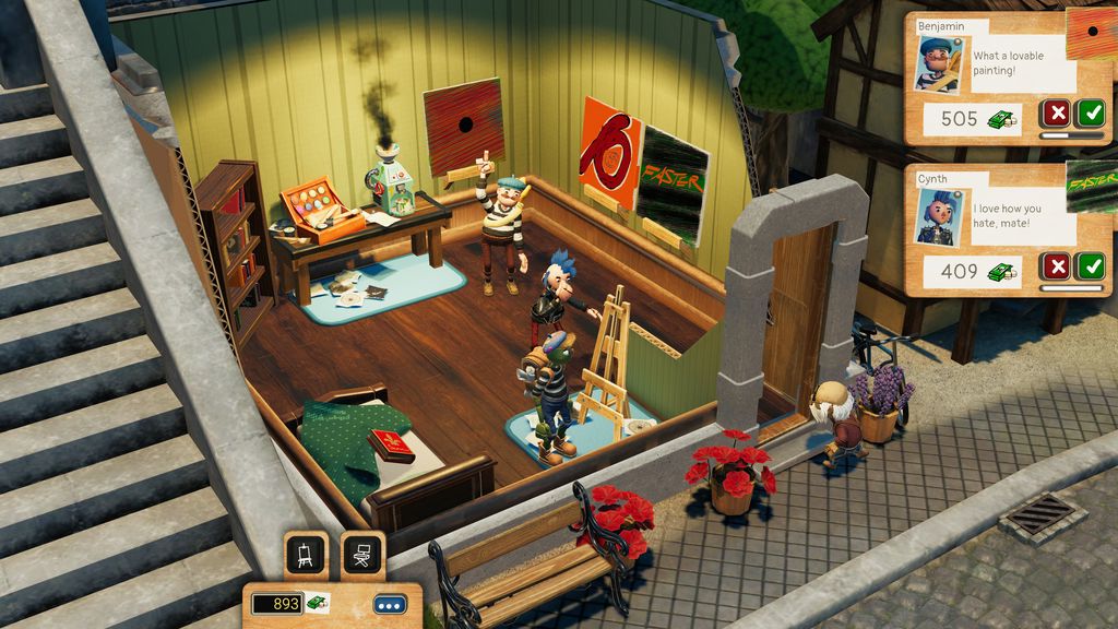 Il punk potrà apprezzare vernici accese o tratti spray, l’alta borghesia sarà attirata da tratti stilografici e colori speciali, altri ancora potranno apprezzare maggiormente tonalità più spente o vivaci, e così via. Talvolta anche il tempo dedicato a un’opera potrà aumentarne il valore. Sarà possibile vendere i propri lavori per strada, attirando i passanti, oppure esporli nella nostra bottega (una volta acquistata). Sarà la città a venire da noi in quel caso, e non il contrario.