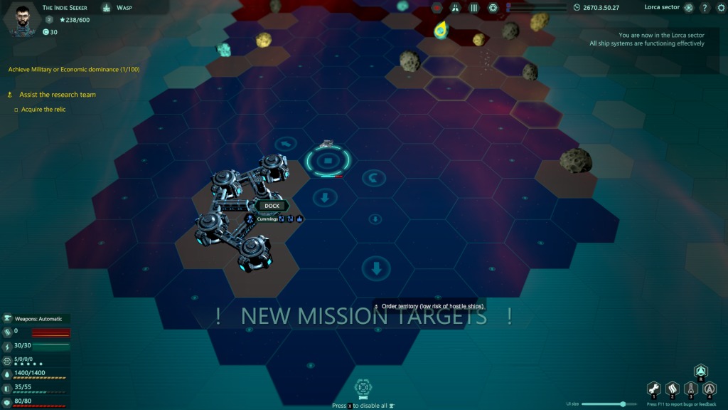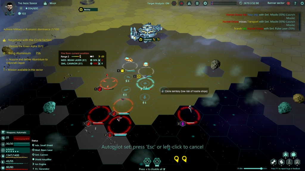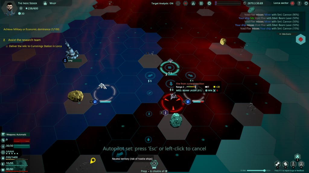 Non a caso questo e altri elementi suggeriscono una sfumatura roguelike non da poco per l’opera di FourFold Games. Le meccaniche introdotte e in generale il ritmo risultano decisi, ma mai esasperanti. Sostanzialmente i nostri viaggi tra i sistemi daranno il via a missioni per rifornire la nostra fazione (o una alleata) e avviare contatti con governi minori.