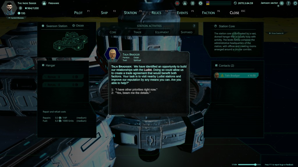 Oggi parleremo di una di queste, Relic Space, che risulta particolarmente interessante grazie al suo approccio non convenzionale. In questa occasione infatti gli elementi ascrivibili al genere di riferimento vanno a insediarsi in una struttura narrativa che propone dialoghi e scelte sulla falsariga dei giochi di ruolo. Quello dello studio indie anglosassone FourFold Games (che include il solo sviluppatore Jonah Wilberg) è quindi un progetto particolarmente ambizioso, con una galassia tutta da esplorare ricca di fazioni pronte a unirsi o a farsi la lotta a seconda dei casi.