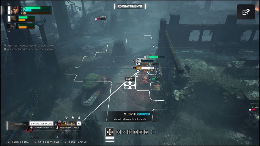 Tutte queste possibilità di scelta dovranno fare i conti con i nemici e l’ambiente in cui ci troveremo. Infatti muri, macchine distrutte e altri oggetti presenti forniranno una copertura ai nostri eroi (ma anche ai nostri avversari). Quando attaccheremo ci verranno fornite molte informazioni sull’esito del colpo. Sopra la testa del nemico apparirà una barra con la percentuale di successo, la probabilità di infliggere un colpo critico e anche quanti danni faremo se l’assalto dovesse andare a segno.