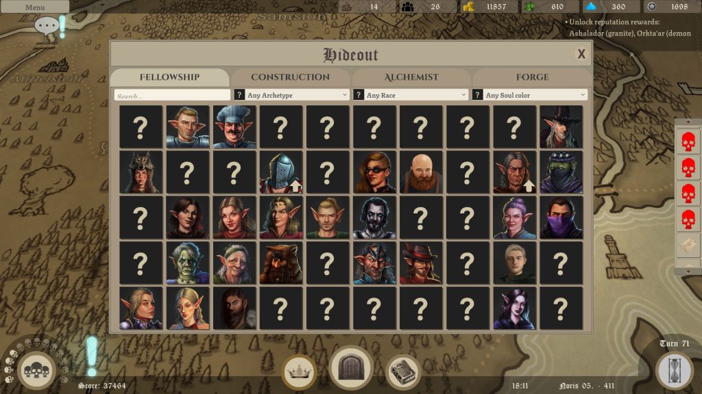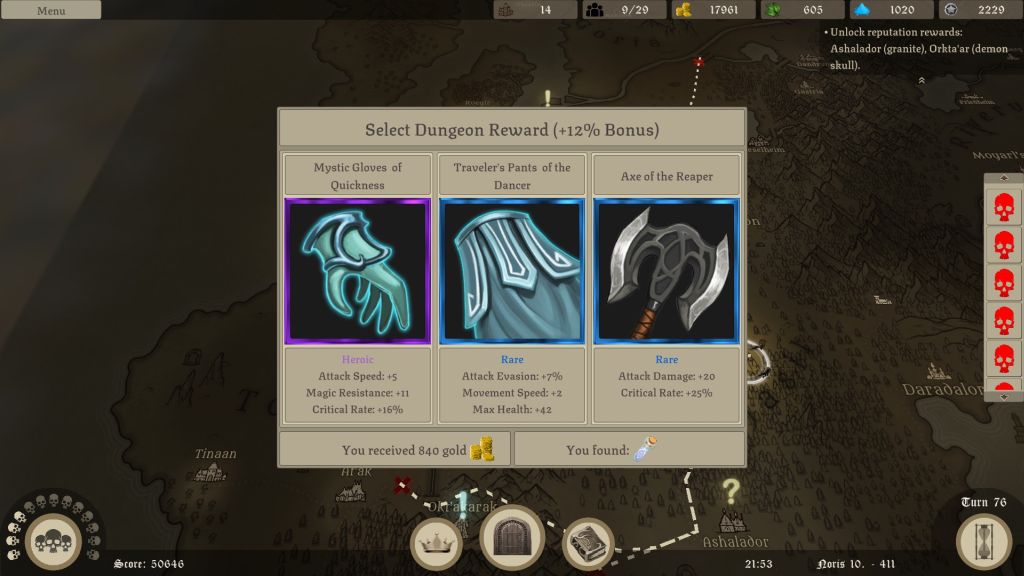 Il crafting è molto semplice e si basa su erbe per quel che riguarda le pozioni. Per armi, armature e artefatti invece avremo bisogno dell’Arcanium, un minerale offerto dai sindaci delle varie cittadine all’ottenimento di una certa reputazione nei confronti dei paesani. Questa meccanica per quanto semplice ed interessante si rivela in parte superficiale poiché già dopo un certo numero di turni avremo ricercato e ottenuto tutte le pozioni e le pergamene che il gioco ha da offrire.