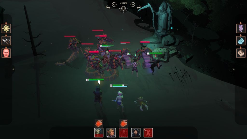 A livello grafico Kingsblood è composto da una mappa a tre quarti dove si muoveranno le icone del gruppo e di eventuali invasori, pronti a fare la festa alla nostra base. Se non riusciremo immediatamente a respingerli, sarà game over. Gli sprite del party e delle creature così come la gestione grafica della gilda sono in stile low poly, che pur non offrendo grandissima varietà dal punto di vista estetico risultano soddisfacenti.