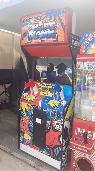 Finita la chiaccherata decidiamo di proseguire, passando tra piccoli stand relativi a snack e un po’ a tutta la Nona Arte (quindi, il mondo dei fumetti). Scegliamo però di concentrarci su ciò che trattiamo sul nostro giornale, e ci dirigiamo al Meta Gaming Pub di Bagheria, che ha messo a disposizione una sorta di mini-sala giochi. Nonostante le contenute dimensioni dello stand, siamo rimasti piacevolmente colpiti. Dalle bellissime postazioni da retrogaming ai classici giochi da fiera con gettoneria, per poi arrivare a uno stupendo cabinato di Point Black!
