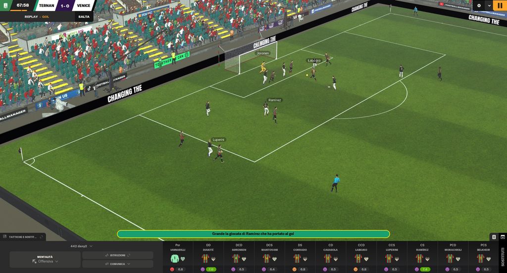 A livello puramente visivo Football Manager 2024 si presenta con una veste pressoché identica al capitolo precedente. Nel complesso il risultato è prettamente in linea con il contesto di riferimento, e anche a dettagli alti avremo giocatori praticamente identici e animazioni spigolose. Gli appassionati andranno ovviamente oltre questo fattore grafico per analizzare a fondo il cuore dell’intera simulazione: il match engine.