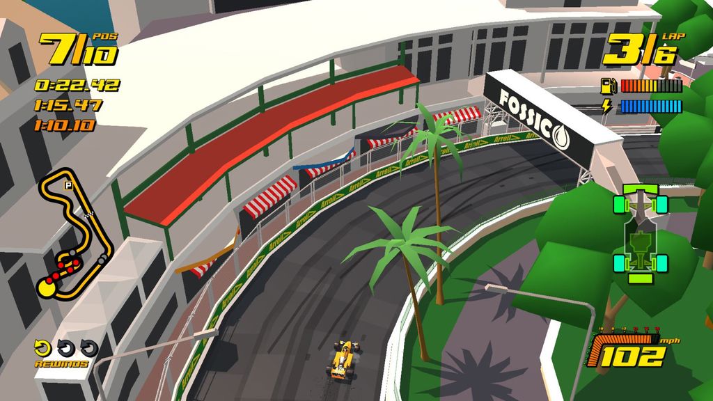 A partire dall’inusuale ma avvincente componente strategica, visto che durante le gare dovremo prenderci cura dei nostri pneumatici e monitorare il carburante. Le nostre decisioni verranno influenzate anche dal cambiamento delle condizioni meteorologiche, che potrebbero richiedere un cambio gomme (di tre tipologie) indipendentemente dall’usura. Persino fare rifornimento eccessivo di carburante potrà rivelarsi controproducente, visto che nel caso la nostra vettura risulterà appesantita e quindi più lenta.