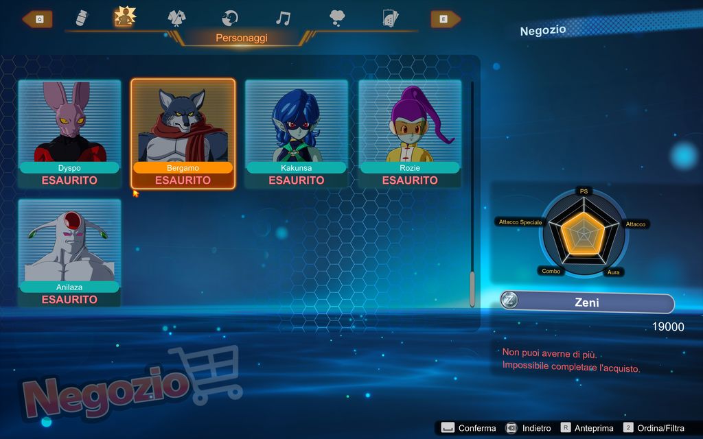 In questa sezione troveremo tante sfide da completare in cambio di varie ricompense.Si tratta di una feature dal potenziale inconcepibile che virtualmente assicura una longevità infinita, ma che poteva essere realizzata in maniera più intuitiva. Continuando a parlare di personalizzazione, è doveroso fare riferimento all’utilizzo della valuta principale del mondo di Dragon Ball, ovvero gli Zeny, ottenibili in vari modi (in primis, il prender parte a dei combattimenti, naturalmente).