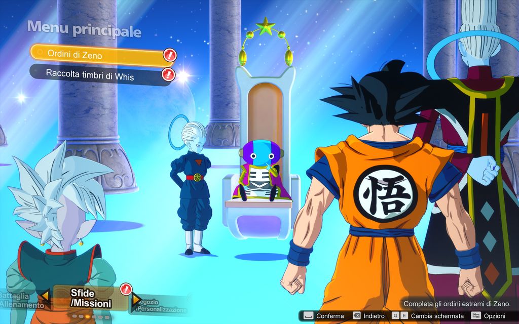 Nelle sezioni “Ordini di Zeno” e “Libro dei timbri di Whis” potremo trovare varie sfide in-game che ci garantiranno ricompense di natura monetaria oppure titoli: qualche volta persino delle sfere del drago. Di queste ultime, ottenibili anche casualmente come ricompensa dalle battaglie, ce ne saranno tre set: quella tradizionali del drago della Terra, quelle di Polunga e le Super sfere del drago.