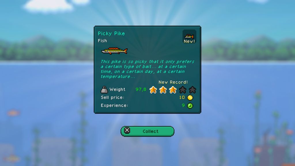 Dal punto di vista tecnico, Nice Day for Fishing offre un’esperienza solida. La grafica in pixel art è realizzata con cura, con paesaggi colorati e animazioni fluide che rendono il mondo di Honeywood vivo e vibrante. Ogni NPC è caratterizzato da piccole animazioni uniche, che contribuiscono a creare un’atmosfera di simpatia e leggerezza. La colonna sonora, realizzata con toni rilassanti e motivetti allegri, accompagna perfettamente le nostre giornate di pesca e battaglie.